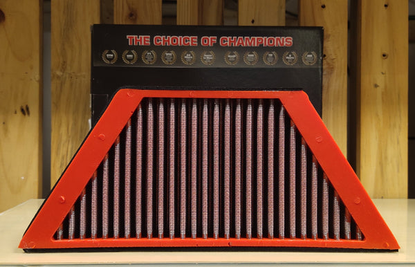 BMC Air Filters are manufactured using a proprietary molding process that yields a truly seamless part. The characteristic red rubber is very pliable and conformable to ensure an airtight seal within your air box. Low viscosity oil saturates multi-layered cotton elements to filter out particulates down to 7 microns yet overall flow is increased in comparison to OEM paper elements. Maximize the efficiency of the air entering your engine to maximize the power coming out of your engine. Keep your bike breathing and performing at its peak with BMC Air Filters!