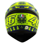 The AGV K1 Winter Test 2015 Helmet has an aerodynamic shape, ventilation scheme, and spoiler developed for the wind tunnel tested Corsa R and Pista GP R. The shell and spoiler provide aerodynamic stability at speed and the spoiler itself features a passive rear vent to extract warm air from the helmet as you ride. The K1 also incorporates the central air intake above the visor taken directly from MotoGP developed Pista GP R to provide best-in-class ventilation.