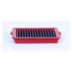 BMC Air Filters are manufactured using a proprietary molding process that yields a truly seamless part. The characteristic red rubber is very pliable and conformable to ensure an airtight seal within your air box. Low viscosity oil saturates multi-layered cotton elements to filter out particulates down to 7 microns yet overall flow is increased in comparison to OEM paper elements. Maximize the efficiency of the air entering your engine to maximize the power coming out of your engine. Keep your bike breathing and performing at its peak with BMC Air Filters!