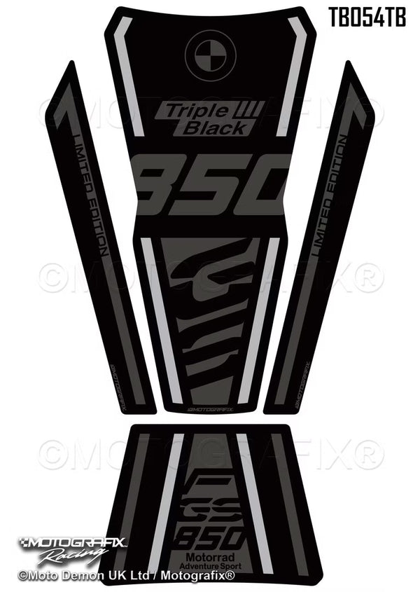 Motografix 3D Gel Tank Pad Protector For BMW F850GS TE 2022 Triple Black