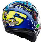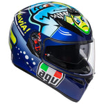 The AVG K3 SV Helmet builds on AGV’s extensive experience in designing the Pista GP and Corsa helmets as well as the legacy of the original K3 helmet. Aerodynamic shell shape is optimized for stability and aggressive aesthetics and features an integrated, compact rear spoiler to reduce turbulence. The narrow chin bar is streamlined to help the helmet cut through the wind at high speeds, further increasing stability.
