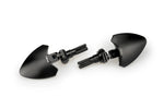 These PUIG rear-view mirrors are CNC-machined from a solid block of aluminum and finished with an anodized coating, offering a premium look and excellent durability. Their elegant curved lines and precision-machined detailing give them a unique blend of character and sophistication, while still maintaining a functional and rider-focused design.
