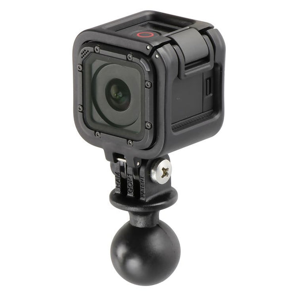 The RAP-B-202-GOP1 consists of a 1" diameter rubber ball, connected to a custom GoPro® adapter. The adapter attaches directly to the under-side of the camera, replacing the factory mounting bracket.