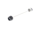 EP Rear Spindle Bobbins for the Kawasaki ZX6R offer crash protection to both sides of the swing arm.   Nylon bobbin heads, sitting over an aluminium core, protrude from the motorcycle's swing arm to help absorb initial impact in any crash. The inventive design allows the slider to rotate to decrease stress on the machine.   Fitted via the rear wheel spindle using a rolled thread spindle rod.