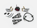 IMPORTANT – You sometimes need to add a pair of indicator resistors in the headlamp or an adjustable rate flasher unit to regulate the flash speed on the LED lamps.  This is not included in the kit.