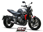 SC Project CR-T Carbon Fiber with Full 3-1 Stainless Steel Matt-Black Ceramic Painting Exhaust System for Triumph Trident 660 (2021-2022)