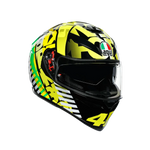 The AGV K3 SV Helmet builds on AGV's extensive experience in designing the Pista GP and Corsa helmets as well as the legacy of the original K3 helmet. An aerodynamic shell shape is optimized for stability and aggressive aesthetics and features an integrated, compact rear spoiler to reduce turbulence. The narrow chin bar is streamlined to help the helmet cut through the wind at high speeds, further increasing stability.