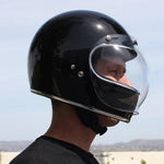 The Biltwell Bubble Shield is a new take on a tried and true design. Made with injection-molded polycarbonate, these tough retro 3-snap shields come in a variety of colors/tints to suit your lid, mood, weather, whatever.