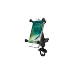 The RAM-B-149Z-UN7U and RAM-B-149Z-UN10U consist of a zinc coated u-bolt base, double socket arm and universal spring loaded X-Grip™ IV cradle for smart phones. Included in this package is hardware that will accommodate bars from 0.50" to 1.25" in diameter. The base includes black cover caps to be placed over the exposed ends of the u-bolt. The included composite rail adapter can narrow the rail to a minimum width of 0.5". The mount is designed with a RAM B size 1" diameter patented rubber ball and socket system that has adjustment points at both ends of the double socket arm; allowing for almost infinite adjustment and perfect viewing angles. The spring loaded X-Grip™ IV cradle expands and contracts, allowing for a perfect custom fit of your phone or phablet. The X-Grip™ includes a device tether recommended for outdoor applications. The cradle is compatible with handheld devices that will fit the dimensions listed below. It is important to verify the dimensions of your handheld device with a case/sleeve/skin when determining the overall size.